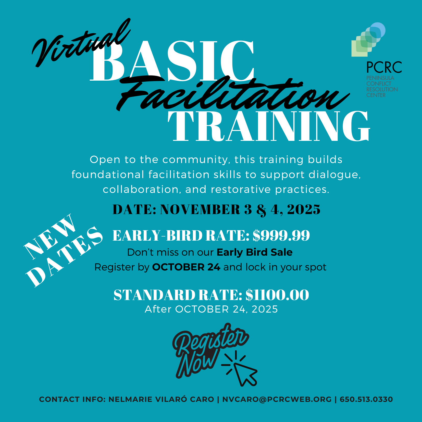 Basic Facilitation Training Monday, November 3, 2025 9:00 AM Tuesday, November 4, 2025 5:00 PM Google Calendar ICS